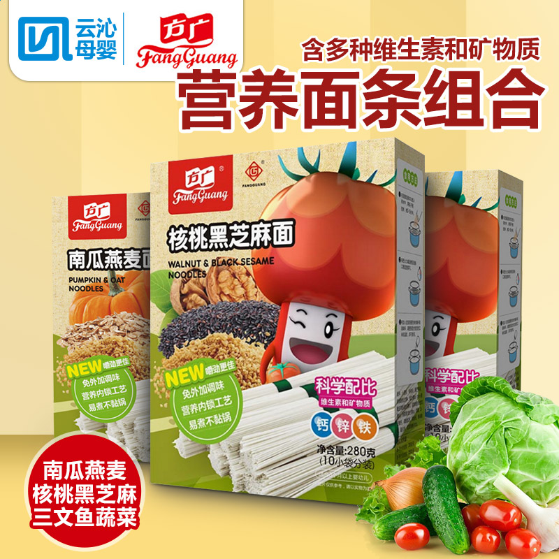 方广婴儿面条三文鱼蔬菜+南瓜燕麦+核桃黑芝麻宝宝辅食儿童营养面