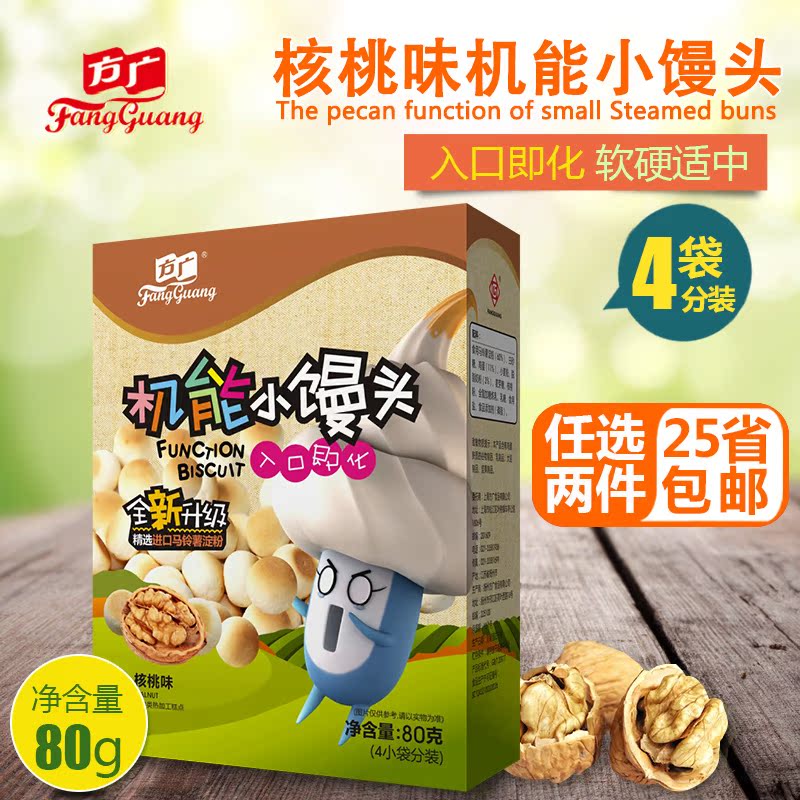 方广婴幼儿辅食核桃味机能小馒头 宝宝营养小点心磨牙零嘴奶豆80g