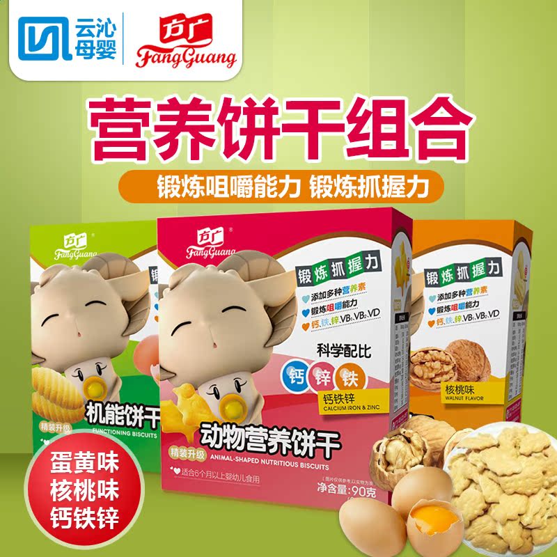方广饼干90g克3盒组合机能饼干 宝宝辅食(蛋黄+核桃+钙铁锌)