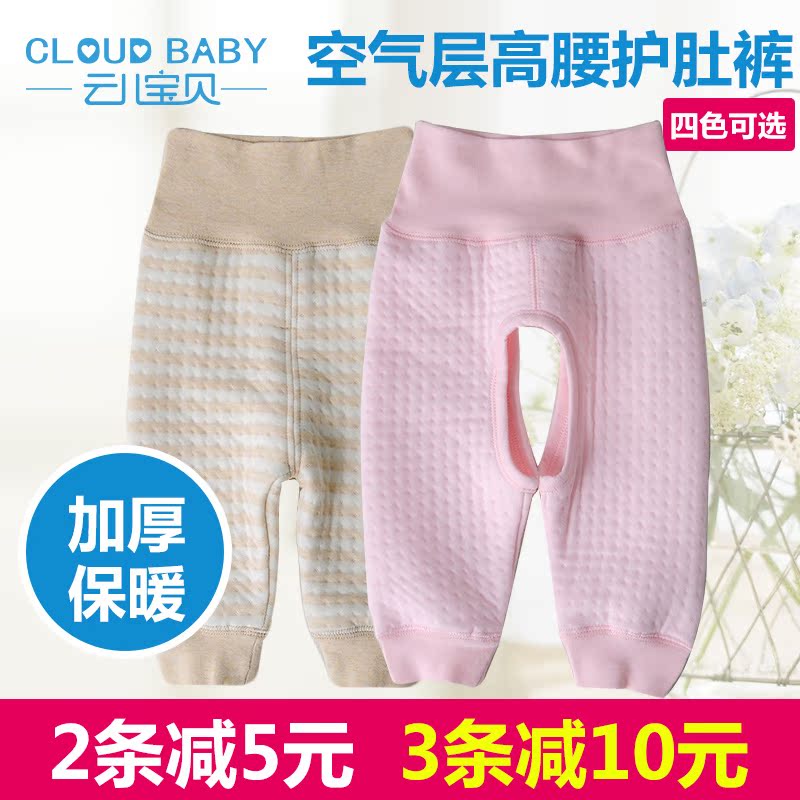 云儿宝贝秋冬厚款 空气棉男女童高腰护肚长裤可开裆裤 婴童保暖裤