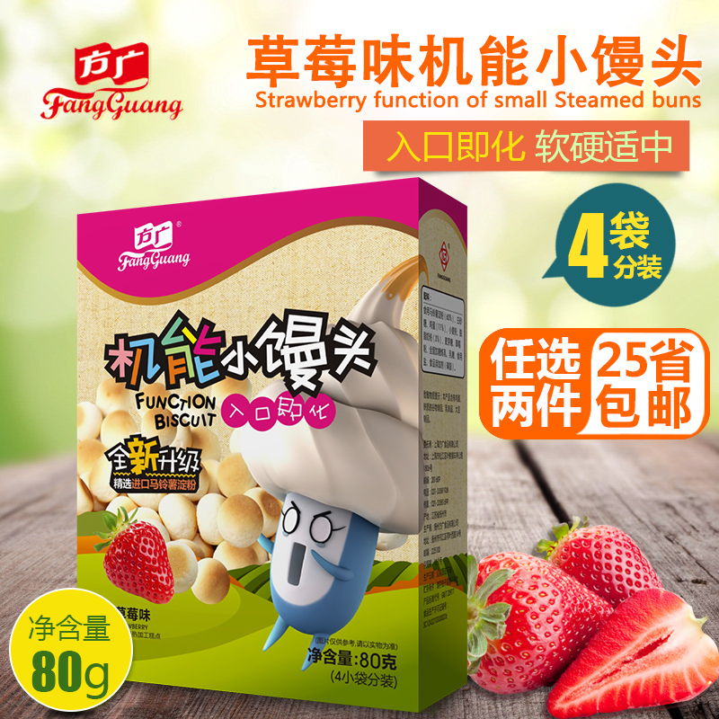 的热门产品方广草莓味机能小馒头 宝宝小点心辅食 婴儿零食饼干磨牙奶豆80g