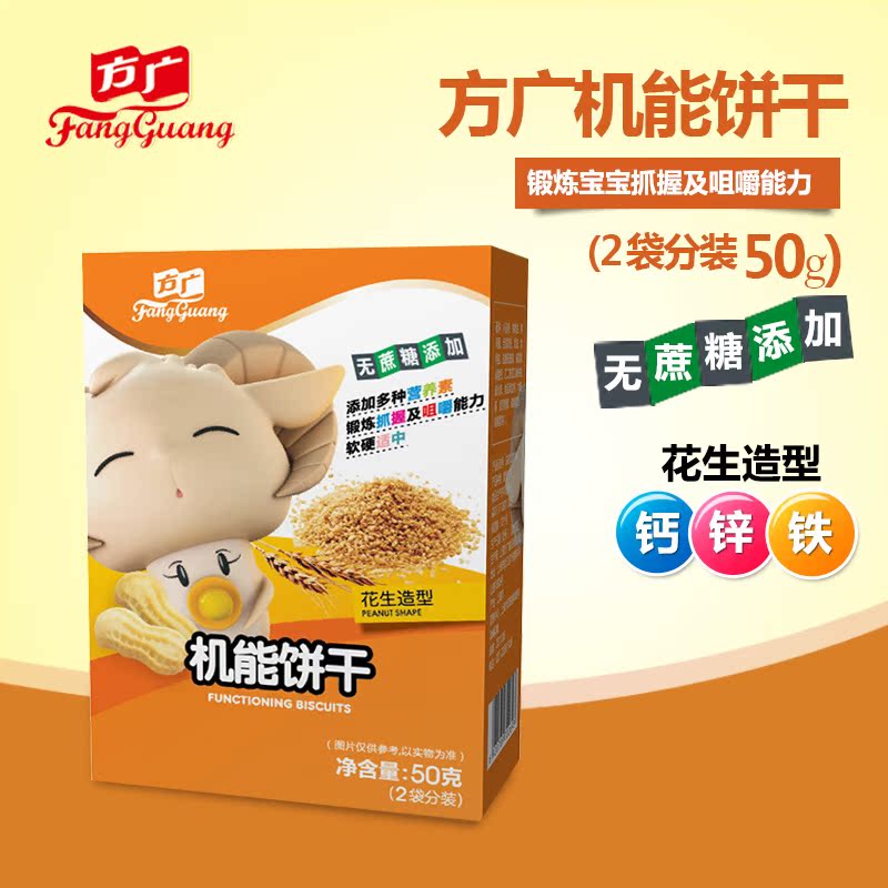 方广婴幼儿辅食零食点心锻炼宝宝手指机能饼干花生造型50g(2小袋)