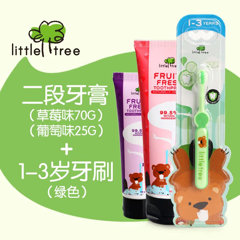 小树苗牙膏组合装(二段草莓70g牙膏+二段葡萄25g牙膏+1-3岁牙刷)