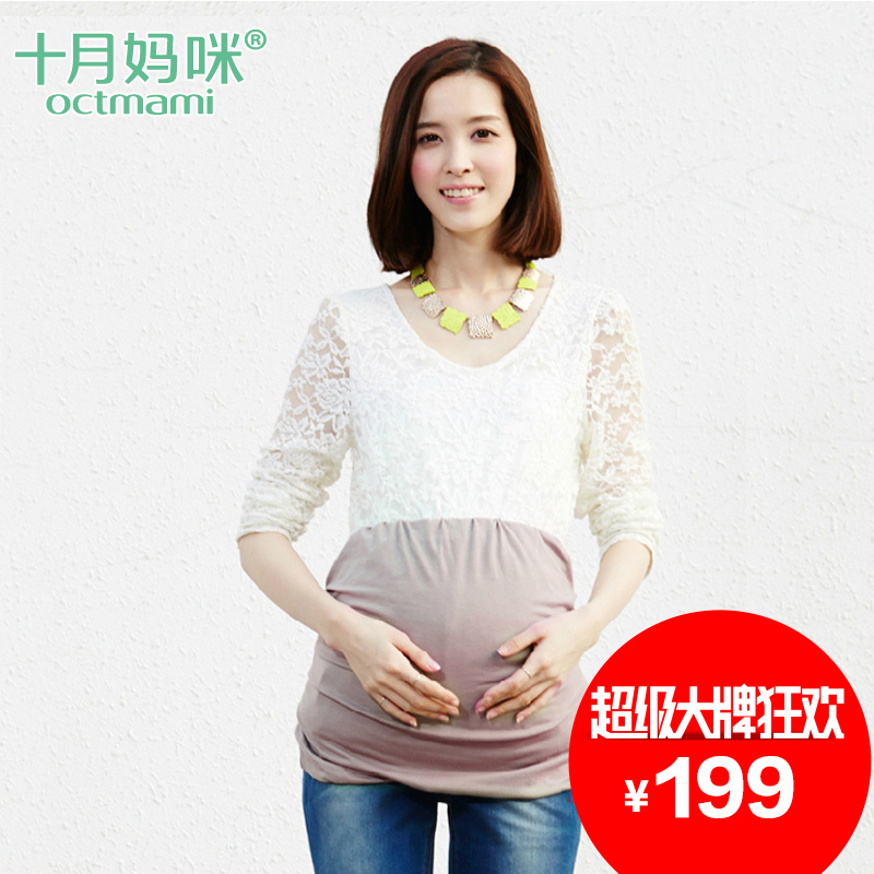 十月妈咪孕妇连衣裙 孕妇装 春装夏装韩版修身蕾丝雪纺裙夏天裙子