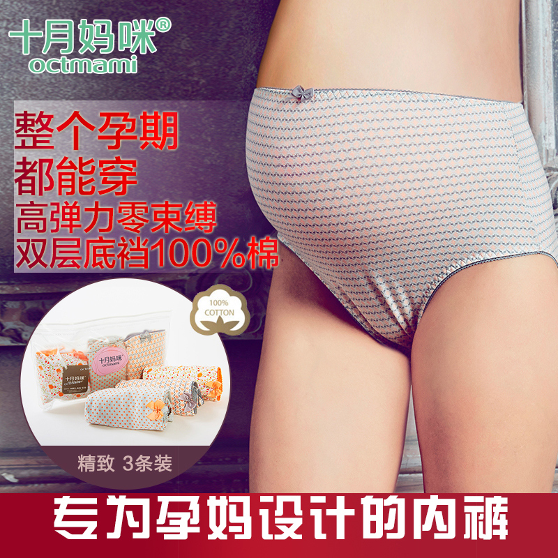 的热门产品十月妈咪3条装高腰孕妇内裤棉大码孕妇内衣内裤 怀孕托腹三角裤