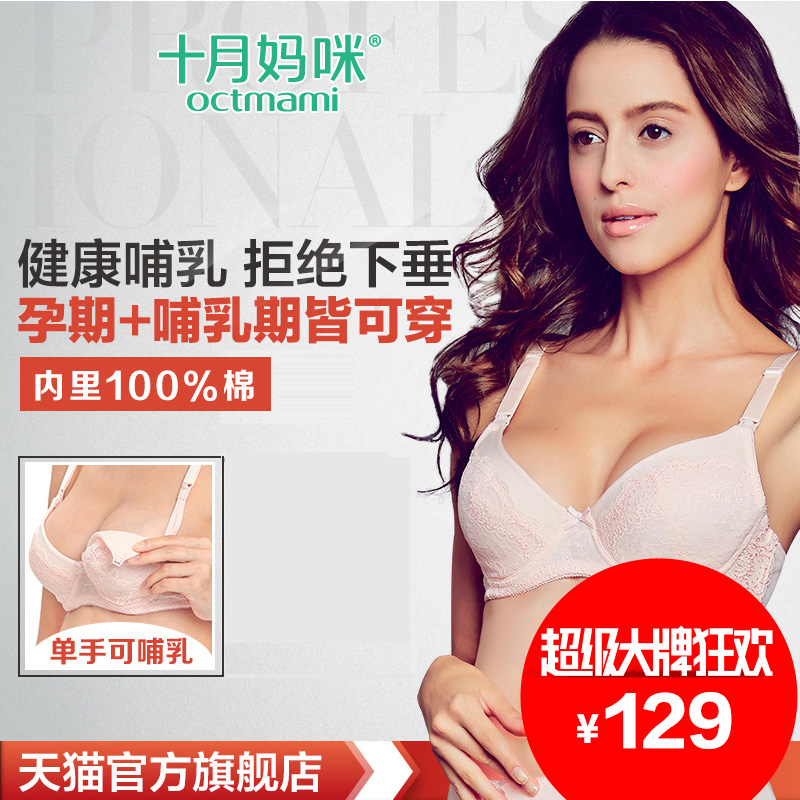 十月妈咪 怀孕期哺乳文胸 防下垂孕妇内衣胸罩 纯棉喂奶哺乳文胸