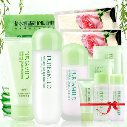 泊美植物倍水润系列洗面奶爽肤水乳液补水保湿隔离霜女士护肤套装