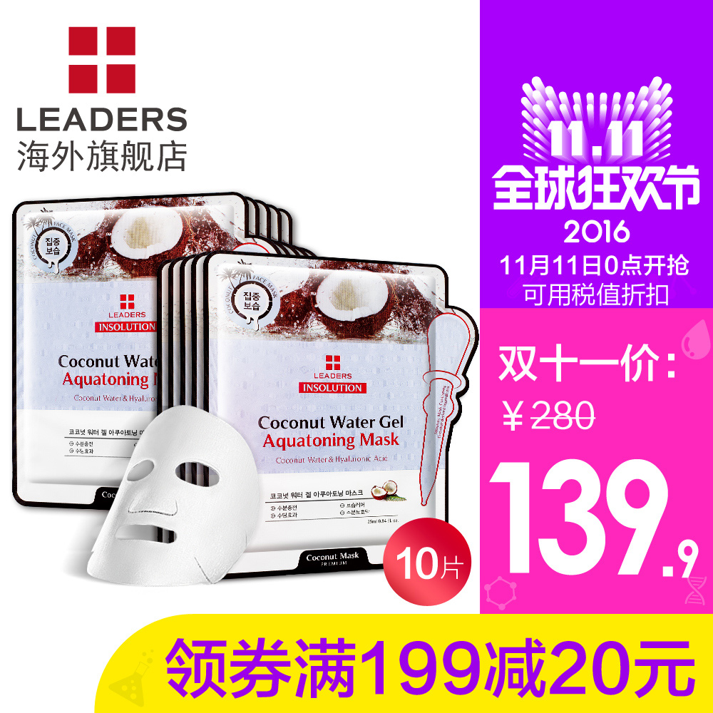 LEADERS/丽得姿花椰菜舒缓椰果面膜10片 韩国原装清爽控油镇定