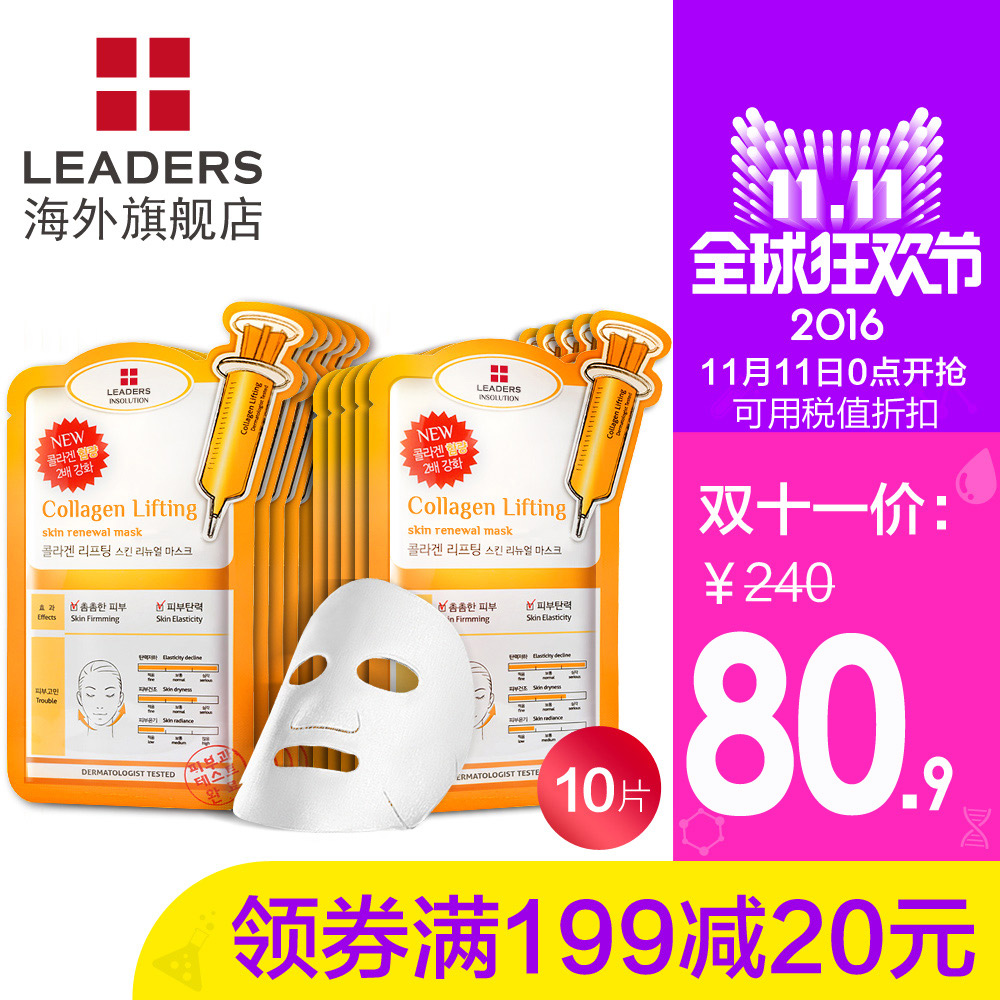 LEADERS/丽得姿胶原提拉多效面膜10片 韩国正品补水紧致提拉抗皱