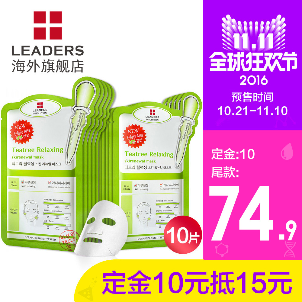 LEADERS/丽得姿茶树控油多效面膜10片 韩国原装正品补水控油修复