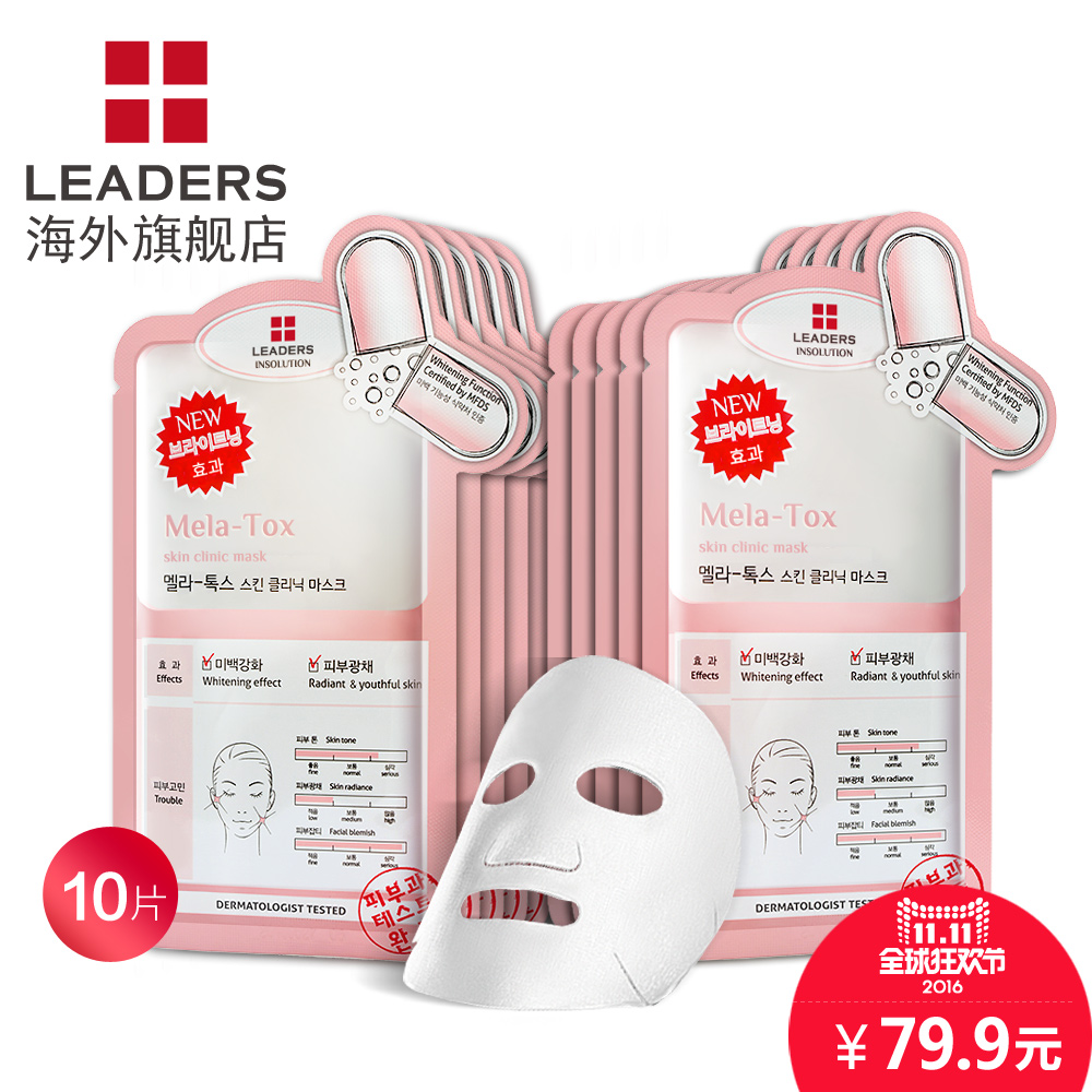 LEADERS/丽得姿焕彩美白修复面膜贴10片 韩国正品保湿提亮收缩