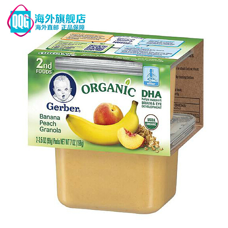 嘉宝2段有机香蕉桃燕麦混合泥盒装198克