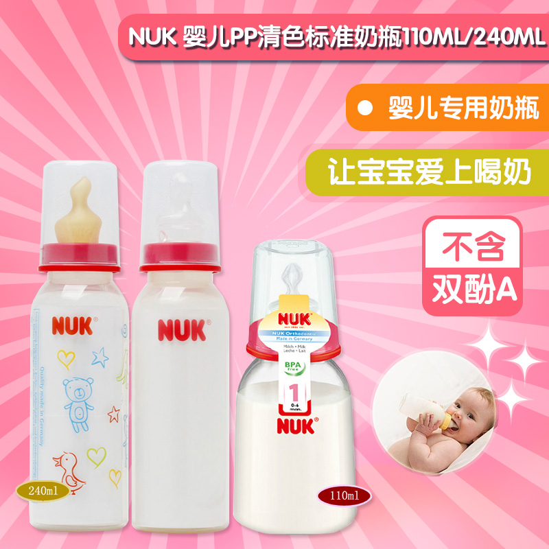 NUK110ML/240ML婴儿PP清色标准奶瓶(带1号硅胶和2号乳胶通气奶)