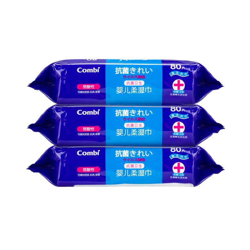 新品/康贝combi 抗菌卫生婴儿柔湿巾 湿纸巾80片*3包8159