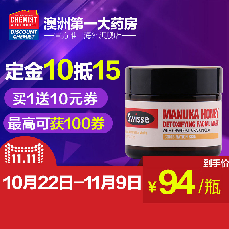 Swisse 麦卢卡蜂蜜面膜70g澳洲进口吸附污垢调节水油平衡澳洲进口