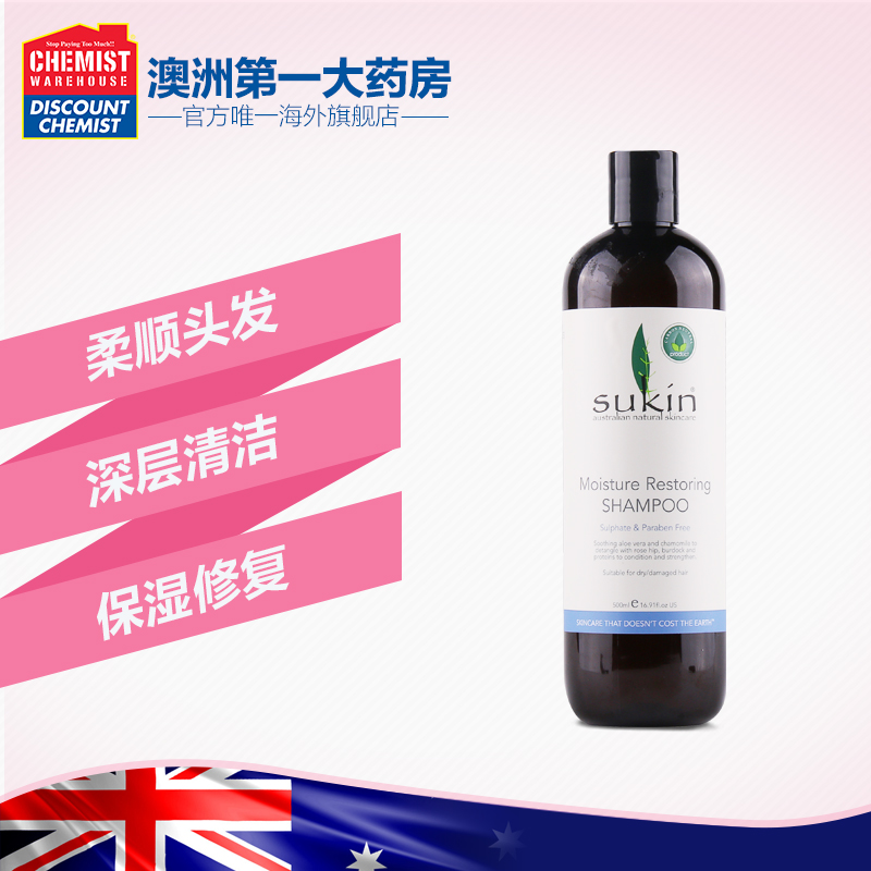Sukin/苏芊保湿修复洗发水500ml大瓶 滋润修复植物无硅油澳洲进口