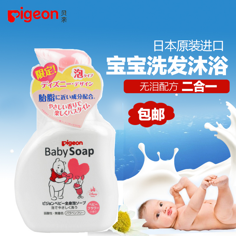 日本进口Pigeon贝亲婴儿保湿沐浴露 泡沫花香型二合一沐浴露500ml