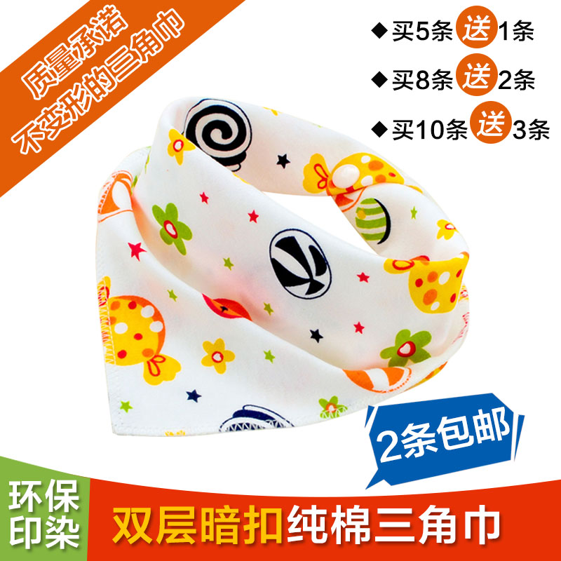 的热门产品2件包邮 婴儿口水巾棉冬宝宝三角巾双层带摁扣新生婴儿围嘴两面用