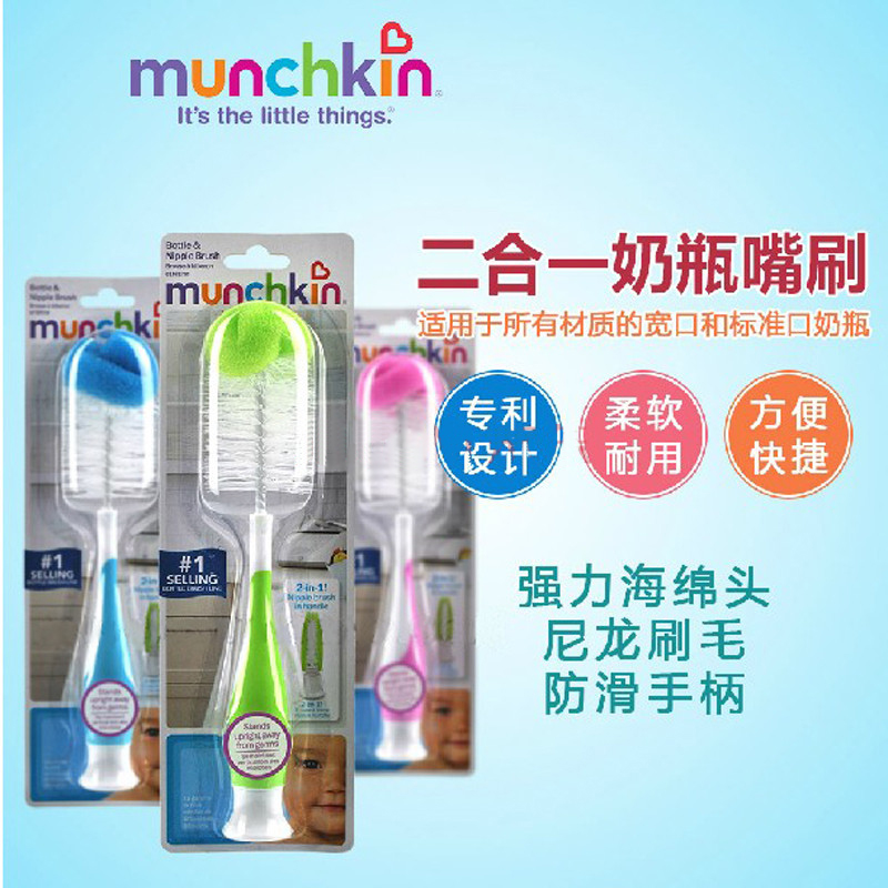 美国Munchkin麦肯齐/麦肯奇 奶瓶刷+奶嘴刷 二合一刷子