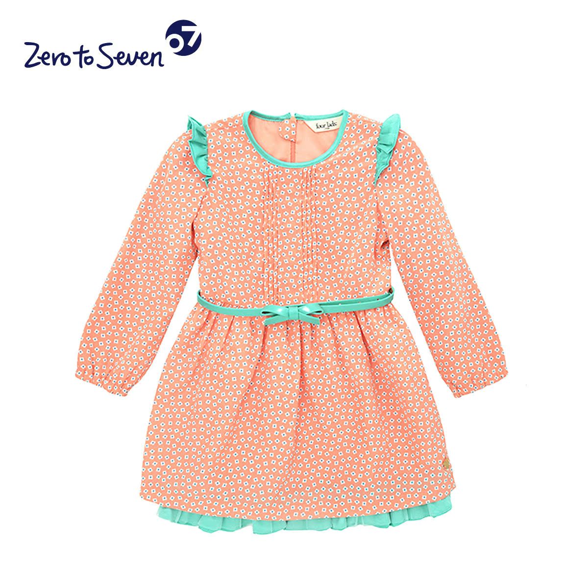 韩国fourlads女童春季新款荷叶边蝴蝶结腰带碎花连衣裙长袖