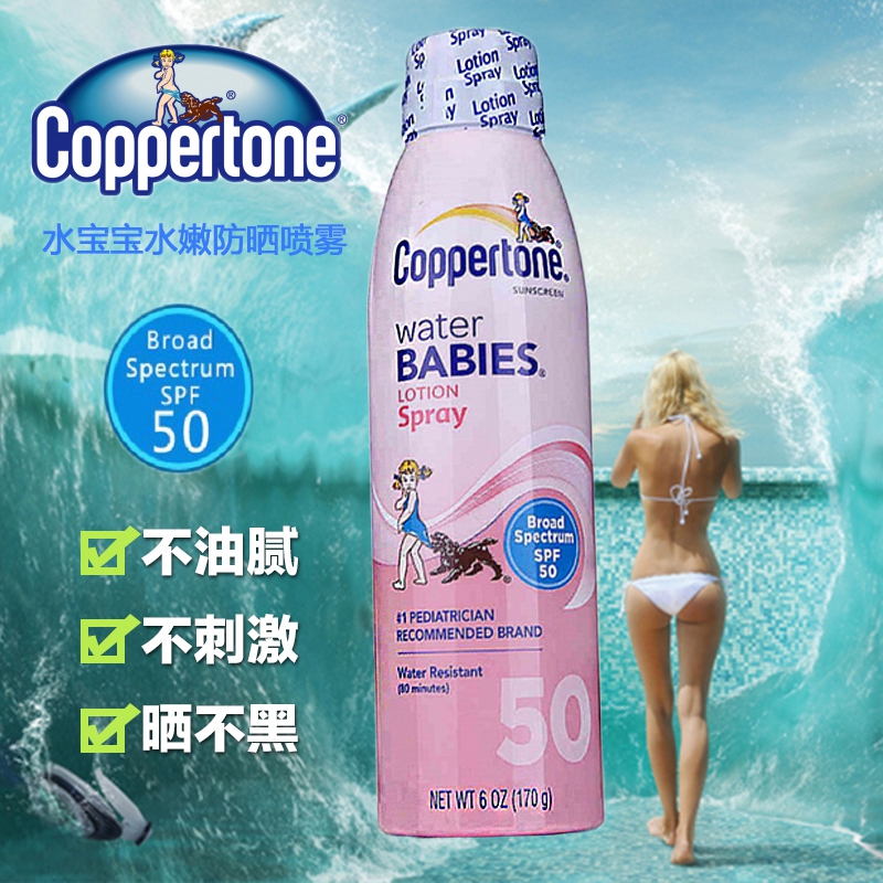 美国直邮原装进口水宝宝Coppertone水嫩持续防晒喷雾SPF50 170g