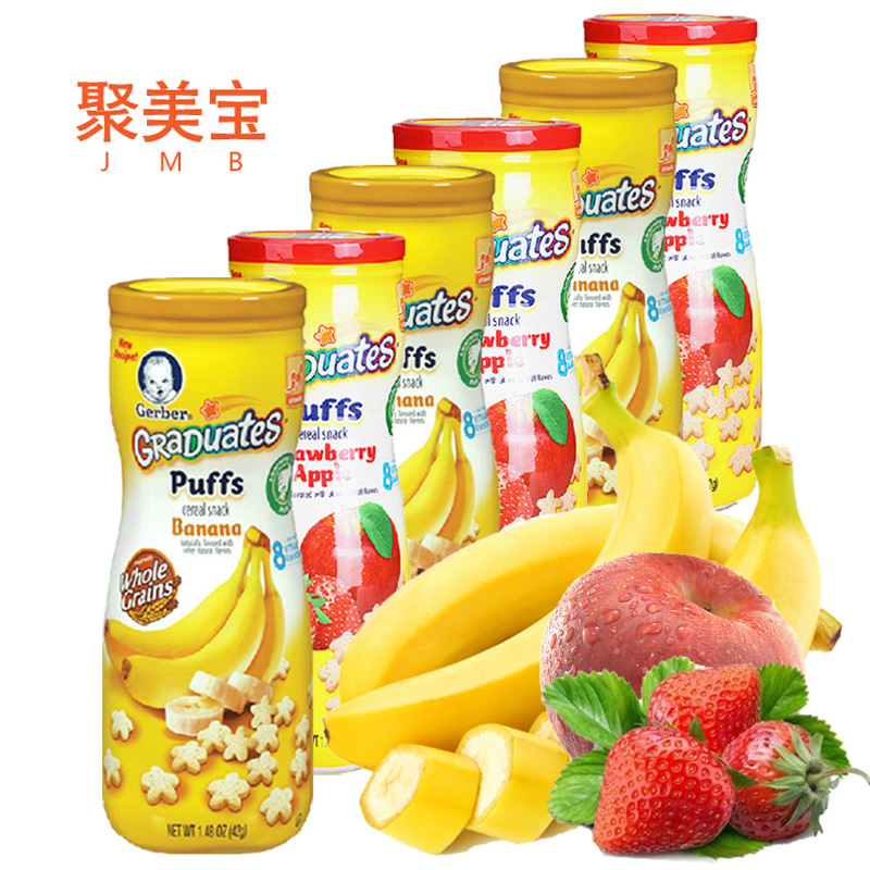 美国进口6罐装嘉宝GERBER香蕉草莓苹果星星泡芙宝宝辅食进口零食