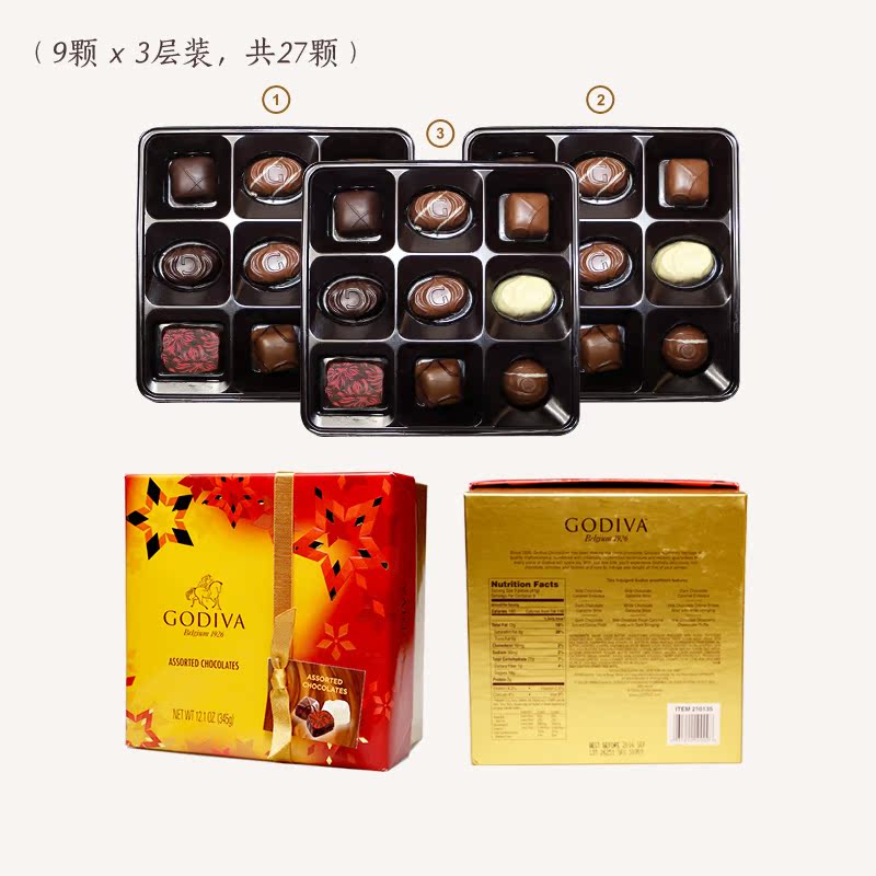美国进口直邮GODIVA歌帝梵金装巧克力礼盒27颗装345g情人生日礼物