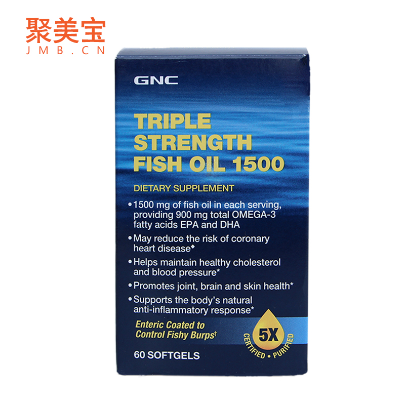 美国原装直邮进口GNC健安喜三倍深海鱼油软胶囊1500mg 60粒装