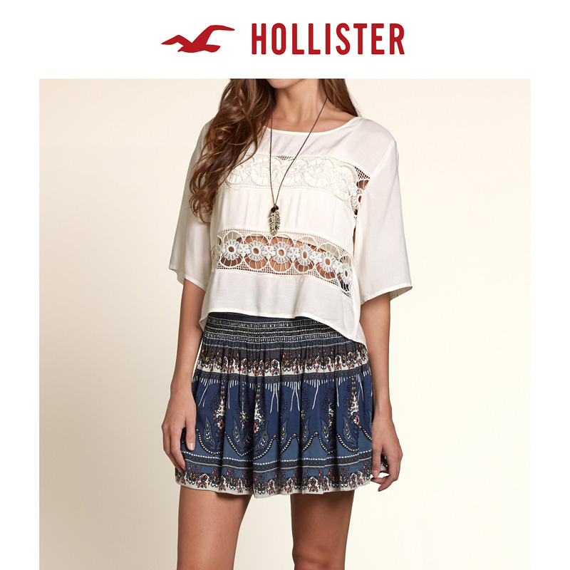 Hollister 2016春装新款蕾丝镶片针织衫 女 107227