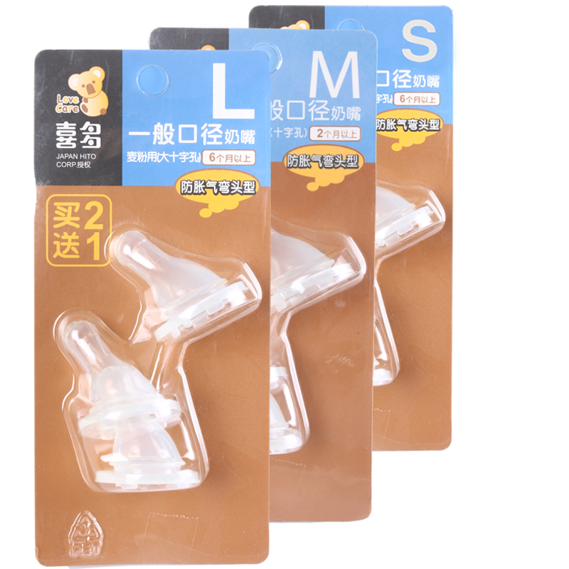 颜色分类:透明 材质:硅胶 品牌:HITO/喜多 流速:中 奶嘴品类:奶嘴(单卖) 规格:S.M.L 口径大小:一般口径 包装种类:3个装 货号:52672/52665/52672 查看全文
