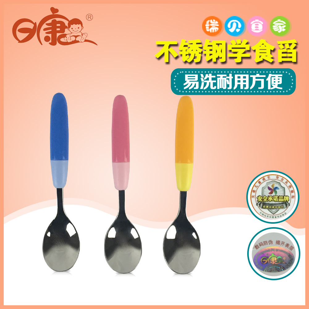 日康儿童宝宝不锈钢喂食匙 瓢羹匙梗 宝宝饭勺汤勺子婴儿专用勺