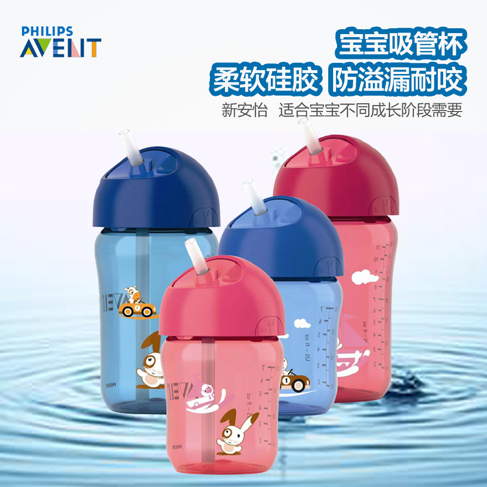 飞利浦新安怡 柔软硅胶吸管杯 防溢漏耐咬宝宝吸管杯