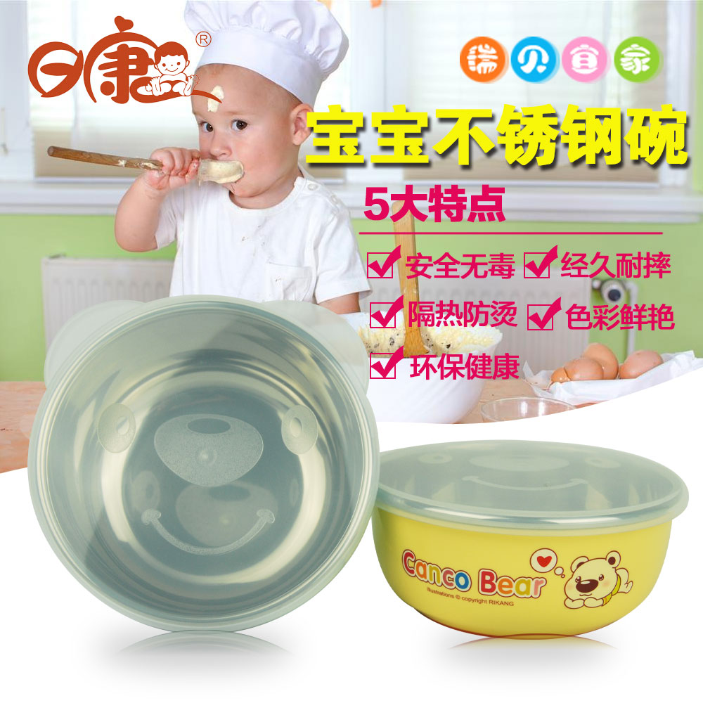日康宝宝不锈钢碗带盖 婴儿防烫碗餐具不锈钢带盖保温 外出携带