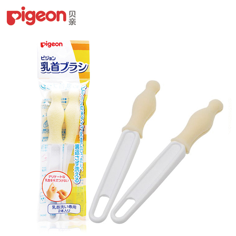 母婴用品瑞贝 贝亲婴儿标准口径奶嘴刷 婴儿海绵宝宝奶嘴刷2只装