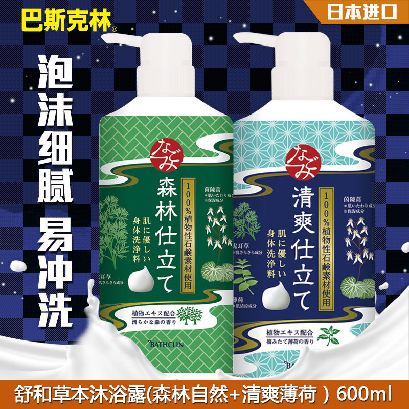 巴斯克林舒和沐浴露(森林香型+清爽薄荷)600ml日本进口淋浴易冲洗