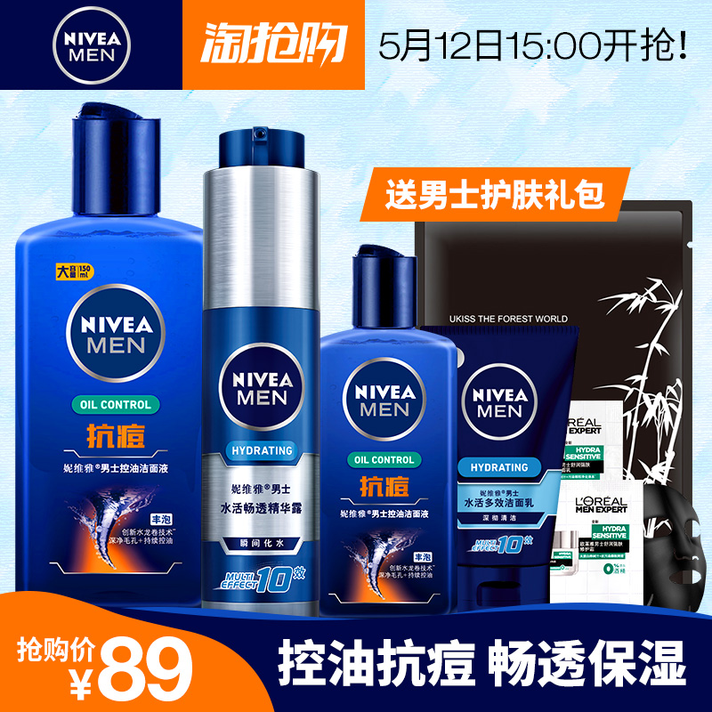 妮维雅男士护肤品套装控油抗痘洁面液男补水保湿小蓝管水龙卷洁面