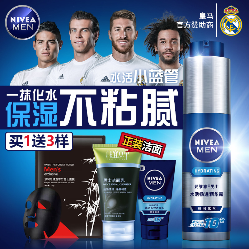 妮维雅男士水活小蓝管畅透精华润肤露护肤霜滋润补水保湿乳液面霜