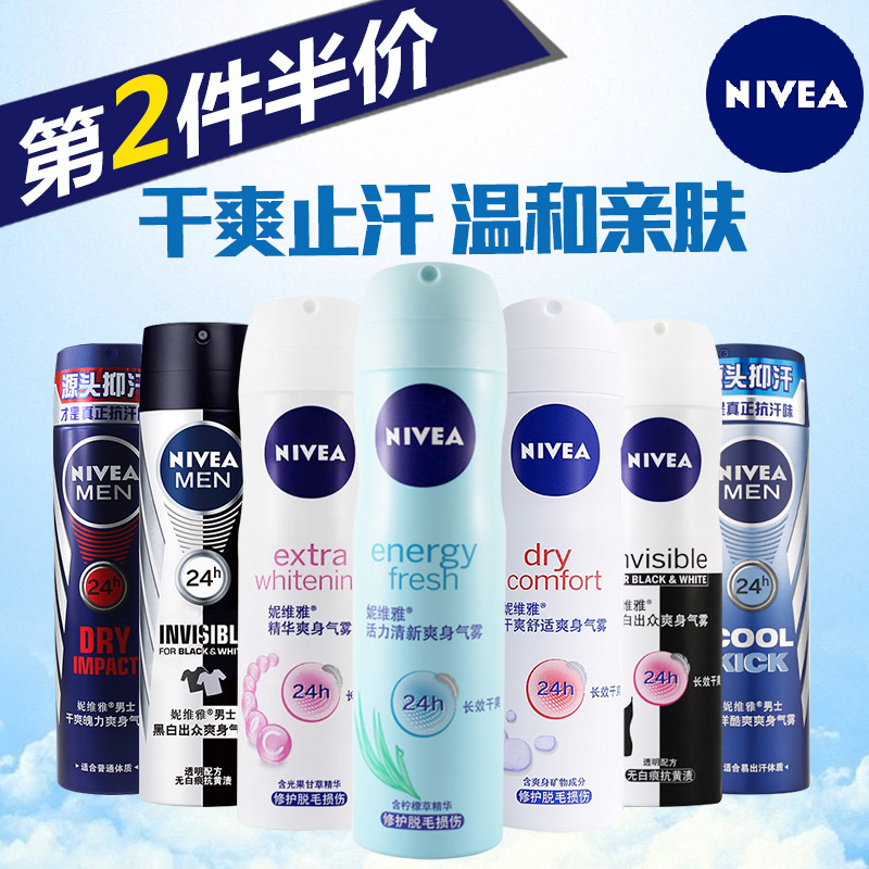 颜色分类:活力清新150ml 海洋酷爽150ml 干爽舒适150ml 干爽魄力150ml 女士黑白出众150ml 女士黑白出众35ml 精华爽身150ml 男士黑白出众150ml 男士黑白出众35ml 男士黑白出众气雾3支 女士黑白出众气雾3支 净含量:150mL 35mL 香调:其他/other 规格类型:正常规格 品牌:Nivea/妮维雅 香水单品:爽身气雾组合套装 产地:中国 查看全文