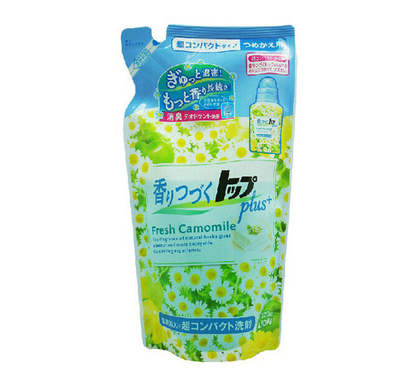日本原装进口狮王TOP超浓缩持久香氛柔顺洗衣液洋甘菊香型替换装