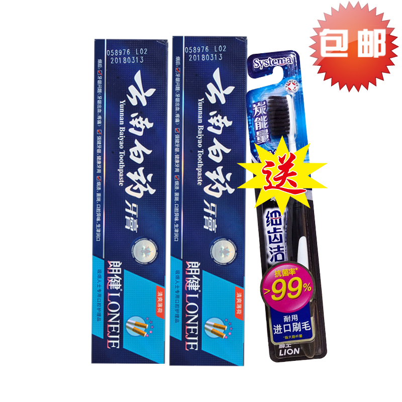 正品云南白药牙膏朗健(清爽薄荷)120g*2美白去黄去烟渍 送牙刷