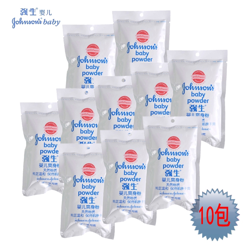 强生婴儿爽身粉70g*10袋装宝宝新生儿补充装天然粉质温和