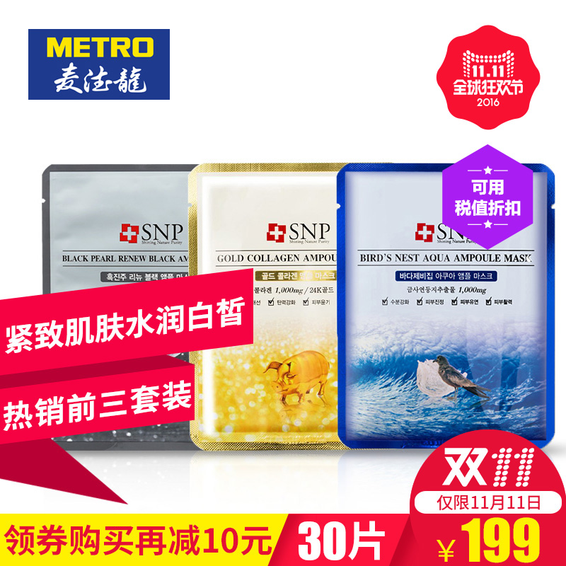 麦德龙 韩国LEADERS丽得姿面膜30片 高效补湿+美白光彩+祛痘净肤