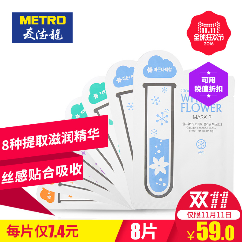 麦德龙九朵云白花面膜套装提亮肤色保湿美白收缩毛孔滋润精华8片
