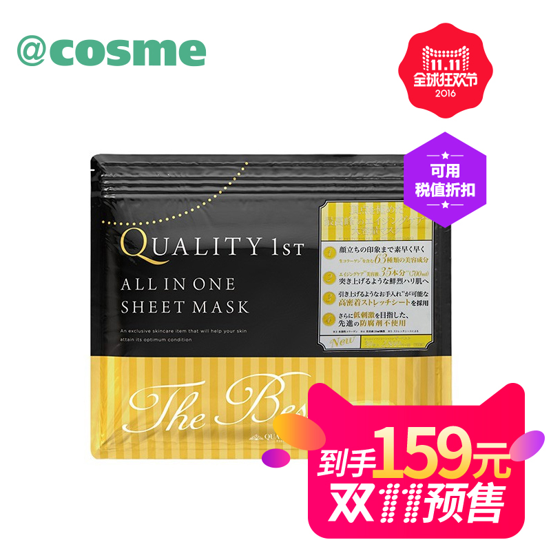 限期使用日期范围:2018-01-01至2018-12-01 规格类型:正常规格 化妆品净含量:30片 品牌:quality first 品名:多效合一63种美容成分紧致肌肤面膜 功效:其他/other 产地:日本 查看全文