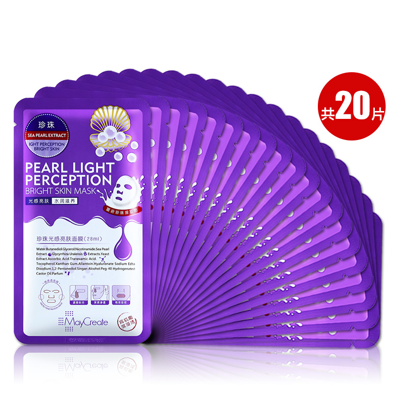 珍珠光感亮肤面膜20贴 补水保湿收缩毛孔清洁祛痘印蚕丝面膜贴