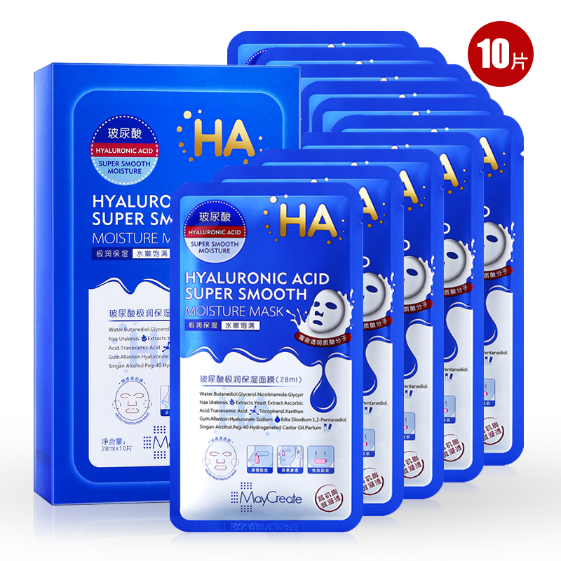 玻尿酸水库面膜10片 美白补水保湿收缩毛孔清洁祛痘印蚕丝面膜贴