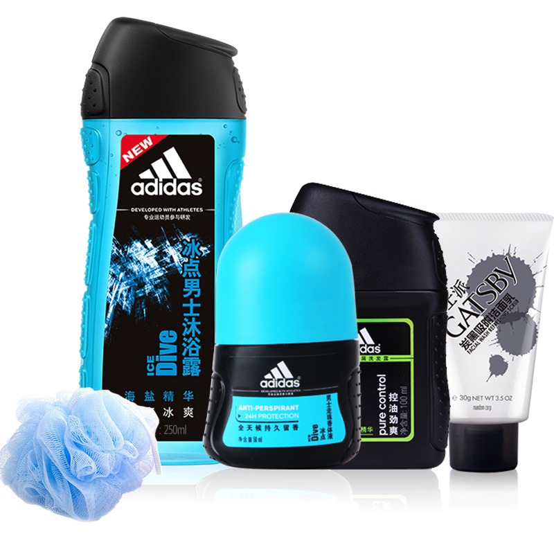 阿迪达斯品牌套装 男士洁面沐浴露冰点走珠洗发水护肤品旅行组套