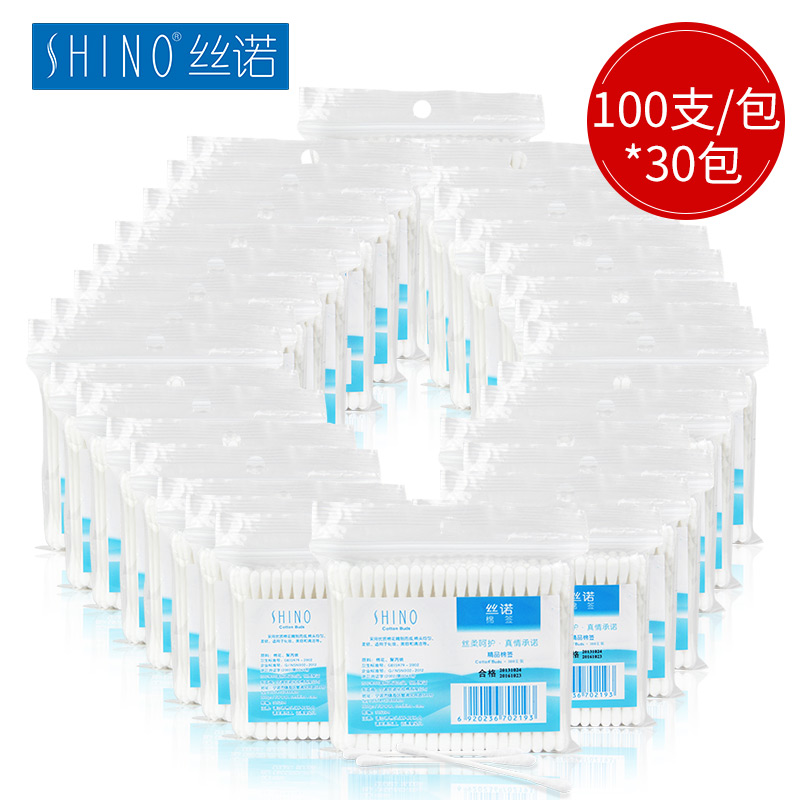丝诺棉签100支/包*30包装双头棉花棒清洁卸妆一次性小巧多用卫生