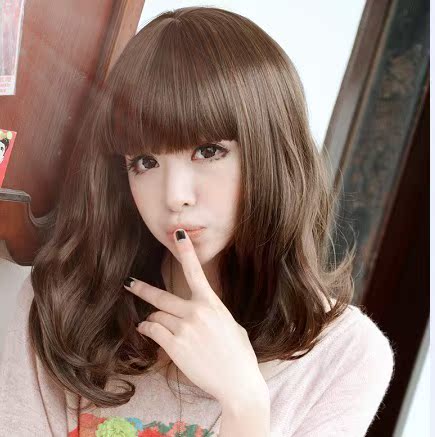 修脸假发长卷蓬松齐刘海 长卷发 手卷 女生 梨花头 蛋卷头假发