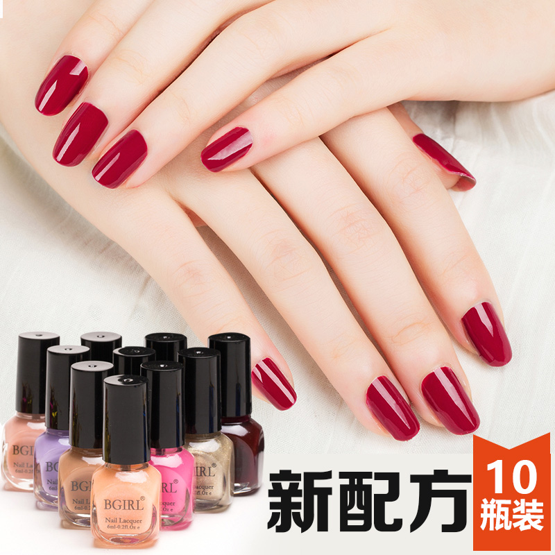 10瓶装 包邮 BGIRL指甲油套装 进口料环保美甲指甲油裸色亮片糖果